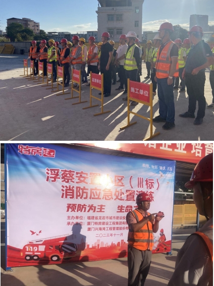 11月9日是第32個全國消防日,為全面普及消防安全知識,進(jìn)一步提高在建項目管理人員及現(xiàn)場工人的消防安全自防自救的處置能力,預(yù)防和減少火災(zāi)事故的發(fā)生,當(dāng)天,市政集團(tuán)以“11·9”消防宣傳日為契機(jī),深入浮蔡安置小區(qū)Ⅲ標(biāo)項目開展11·9”消防安全宣傳日活動圍繞主題開展了消防應(yīng)急處置演練活動,公司副總經(jīng)理修海金、質(zhì)安部及施工、監(jiān)理單位共計五十余人參加活動。
