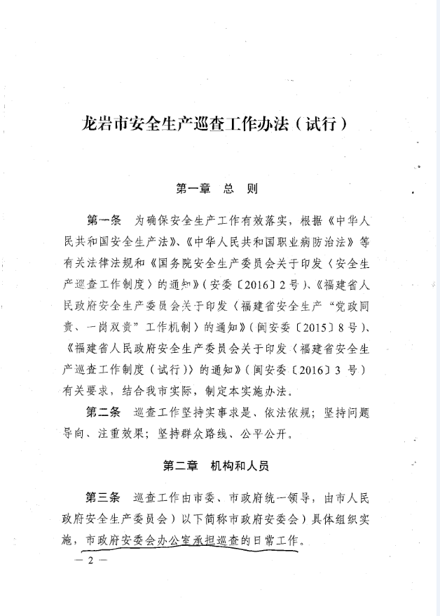 龍巖市安全生產(chǎn)責任清單及安全生產(chǎn)巡查工作辦法(巖委【2017】45)