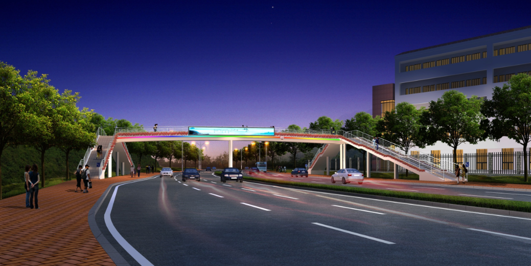 水韻華都人行天橋位于龍騰路水韻華都南側(cè),橫跨龍騰中路。橋長(zhǎng)34.4米,寬3.6米,下部結(jié)構(gòu)采用鉆孔灌注樁和擴(kuò)大基礎(chǔ),上部結(jié)構(gòu)采用鋼結(jié)構(gòu),項(xiàng)目總投資約400萬(wàn)元。項(xiàng)目于2016年4月開(kāi)工,8月底竣工。項(xiàng)目建成后,可有效保障該片區(qū)行人過(guò)街的安全,提高人們出行效率。