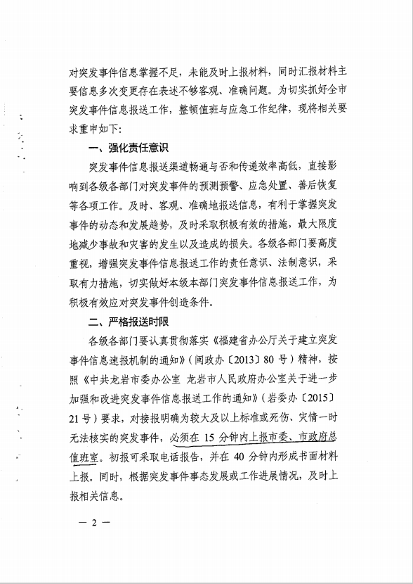 市政府辦關(guān)于切實(shí)抓好突發(fā)事件信息報(bào)送工作的通知(龍政辦【2017】100號(hào))